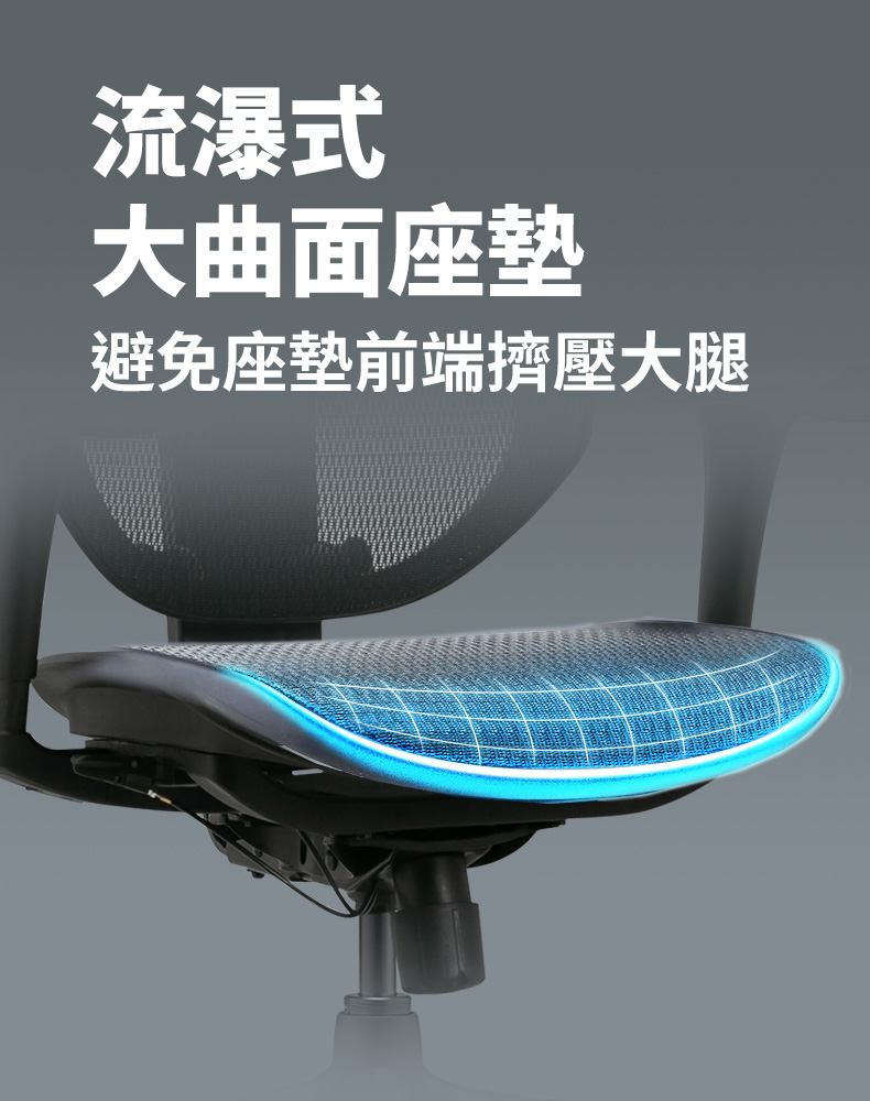 採用美國科技面料Matrex Quantum 4.0技術以人體仿生工學設計,設計8個不同張力的橫向區域,均勻承託不同坐姿及久坐產生壓力。