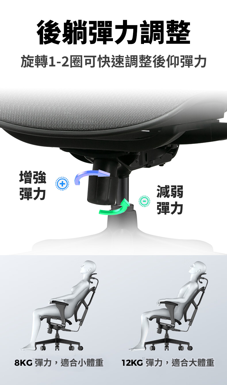 後仰回彈力度可調式設計