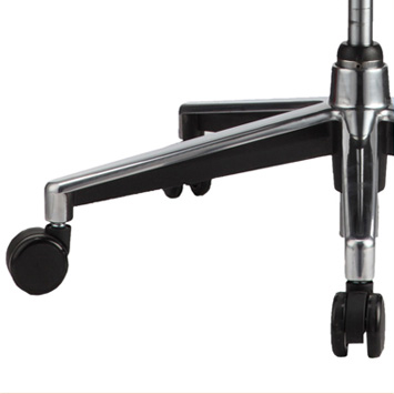 獨家造型設計的鋁合金椅腳與65mm PU椅輪,採用獨家設計的鋁合金椅腳,令產品更顯得格外的個性化,底部的深沉穩重與厚實感,搭配65mm PU椅輪,不論在何種材質的地板中滑行都不會對地板造成傷害,此款PU輪採用靜音處理,噪音系數更低。