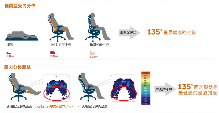 提供135度最健康與舒適的辦公坐姿