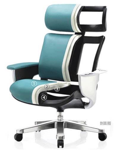 - 1.當雲椅後仰時,座墊將會同步向下向後同時滑動