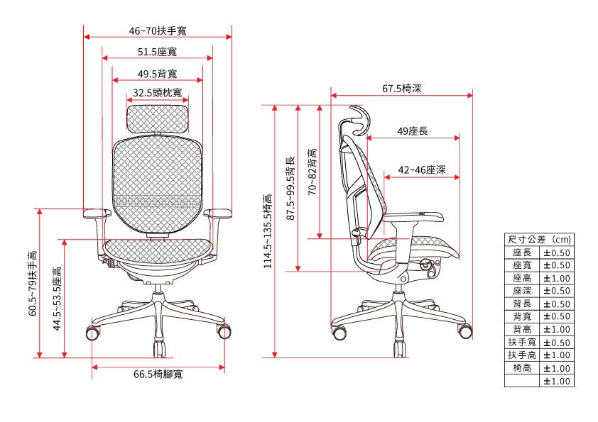 採用美國科技面料Matrex Quantum 4.0技術以人體仿生工學設計,設計8個不同張力的橫向區域,均勻承託不同坐姿及久坐產生壓力。