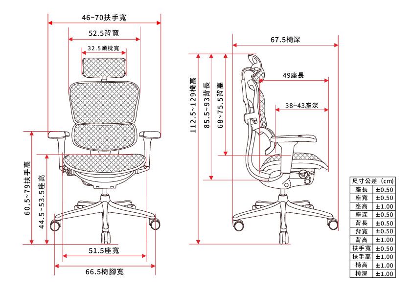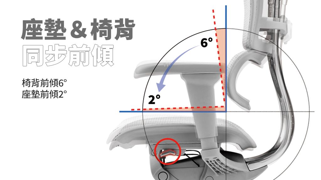 同步前傾追背功能,椅墊和椅背前傾調整