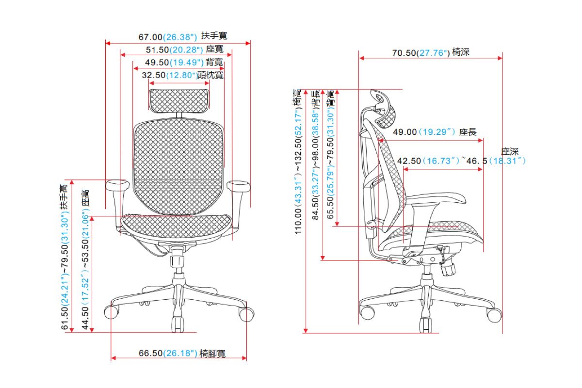 採用美國科技面料Matrex Quantum 4.0技術以人體仿生工學設計,設計8個不同張力的橫向區域,均勻承託不同坐姿及久坐產生壓力。